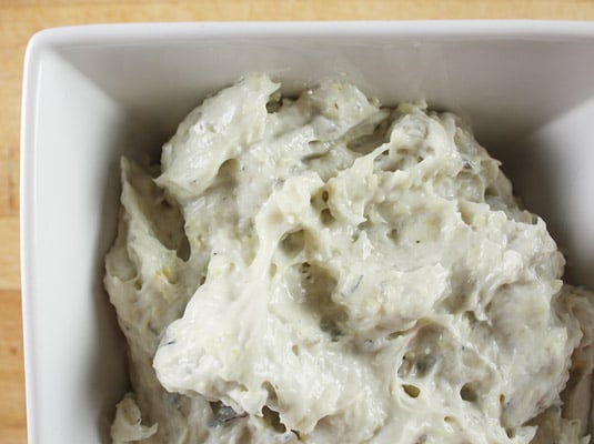 Raw shrimp filling looks a bit goopy but it cooks to a nice pink color.